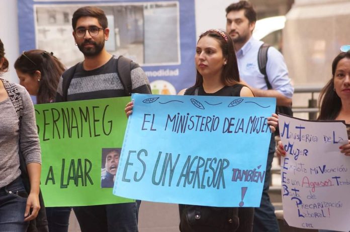 En el mes de febrero, las trabajadoras de 14 Centros de la Mujer de la Región Metropolitana, entregaron su petitorio a la oficina de partes del Ministerio de la Mujer y Equidad de Género luego de denunciar múltiples irregularidades laborales, entre las que se encuentra la negación de condición de trabajadoras conforme al Código del Trabajo, despidos injustificados, sueldos y reajustes precarios, retardos excesivos en el pago de remuneraciones y el no pago de pre y post natal.
