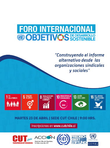 Se trata de una Jornada de Trabajo con la finalidad de elaborar en forma conjunta un informe alternativo sobre los Objetivos de Desarrollo Sostenible desde las organizaciones sindicales y sociales, con ocasión este año de la presentación de una nueva contribución voluntaria del Estado chileno ante las Naciones Unidas.