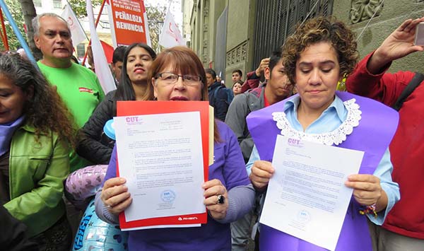 Un concurrido acto de protesta de trabajadoras y trabajadores –portando globos, mamaderas extra grandes y chupetes – se desarrolló este lunes frente al edificio de la Dirección Nacional del Trabajo (DT) mientras la Vicepresidenta de la Mujer e Igualdad de Género de la CUT, Julia Requena entregaba una carta al director de la DT, Mauricio Peñaloza.