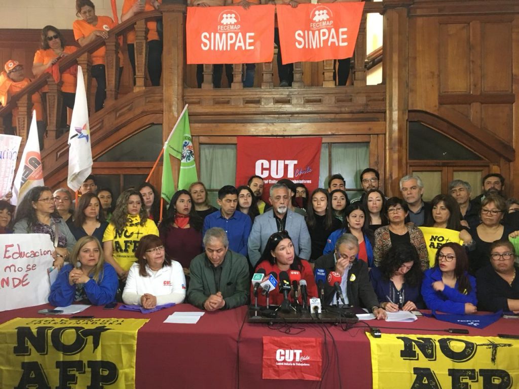 AsĆ­ lo seƱalaron este lunes en conferencia de prensa los dirigentes de Unidad Social –conformada por mĆ”s de 70 organizaciones sindicales y sociales, entre ellas la Central Unitaria de Trabajadores (CUT Chile), Agrupación de Nacional de Empleados Fiscales (ANEF) Colegio de Profesores, Coordinadora NO+ AFP, organizaciones de trabajadores de distintos sectores como de Salud, Educación, Comercio, Banca, Industria) federaciones de estudiantes secundarios y universitarios, acadĆ©micos, organizaciones de pobladores, de defensa del agua, del medioambiente, de pueblos originarios y de derechos humanos.