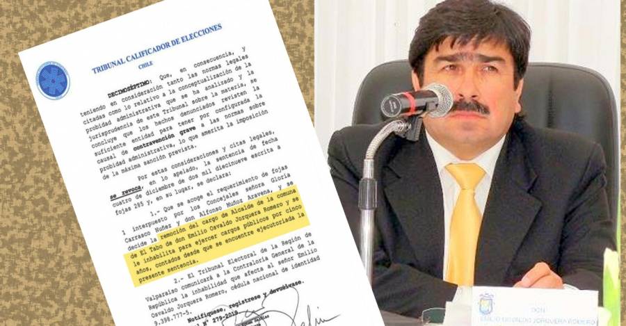 El alcalde de la comuna de El Tabo, Emilio Jorquera Romero (PPD), fue removido de su cargo este martes 25 de febrero. Esta medida se debe a una sentencia del Tribunal Calificador de Elecciones (Tricel), en la cual se establece que el alcalde realizó actos que contravienen gravemente a la probidad administrativa que corresponde a su cargo.