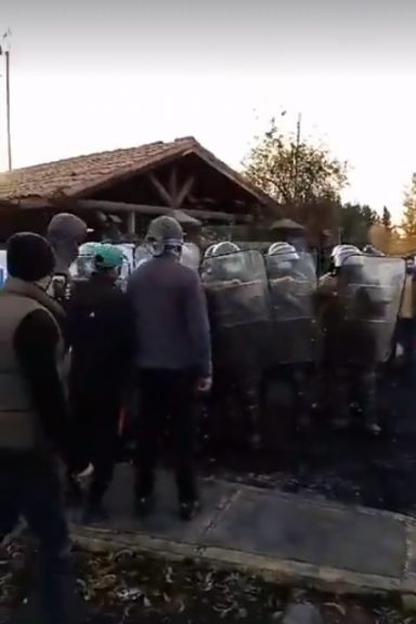 En las imágenes compartidas en redes sociales, se observa la irrupción del piquete de carabineros, provistos de cascos y escudos. Después de algunos forcejeos, los funcionarios emplean bombas lacrimógenas para dispersar a los manifestantes que copaban el ingreso a la planta. No se aprecia en los registros que los operarios se enfrenten a los carabineros, salvo empujones.