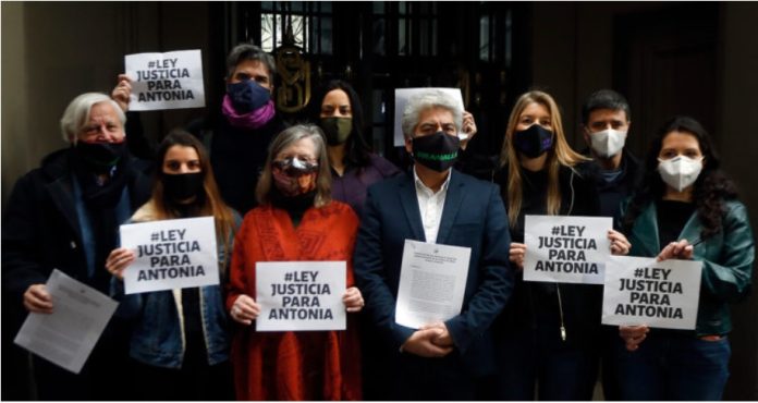 Las diputadas Paulina Nuñez y Marcela Sabat, de Chile Vamos, con Maite Orsini y Gael Yeomans, del Frente Amplio, además de Gonzalo Fuenzalida (RN) y Marcelo Díaz anunciaron el proyecto “Justicia para Antonia”, iniciativa pretende que los agresores sean considerados -en todos los casos- como un peligro para la seguridad de la víctima, por lo que insta a aplicar la medida cautelar de prisión preventiva en todos los casos.