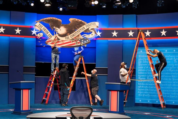 Los candidatos debatirán desde sendos podios situados a una distancia superior a la habitual debido a la COVID-19, no se darán la mano -como es habitual en este tipo de debates-, y competirán ante un público limitado, de unas 80 ó 90 personas, todas ellas sometidas previamente a test de coronavirus, informa EFE.